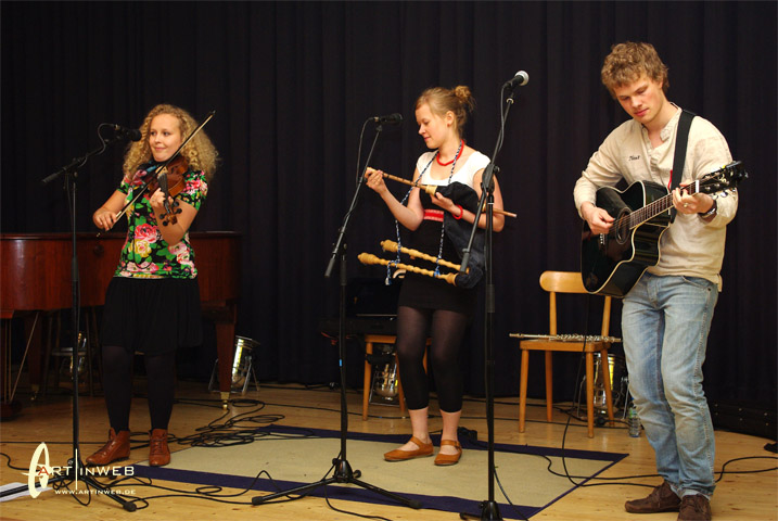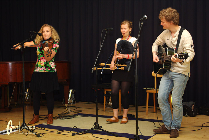 Die drei jungen estnischen Volksmusikstudenten von der Universität in Viljandi spielen traditionelle estnische Volkstanzmusik auf eine Weise, die auch und gerade bei jungen Hörer die Füße im Takt stampfen, die Hüften kreisen und das Herz schneller schlagen läßt.