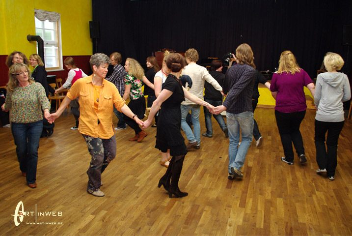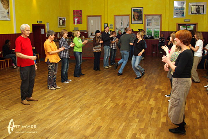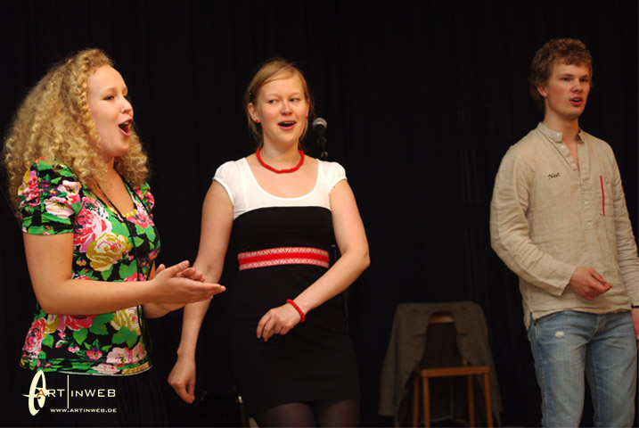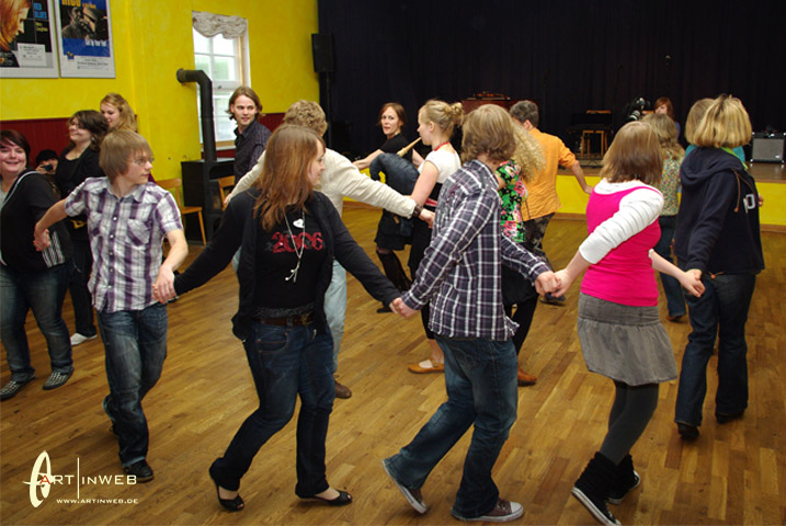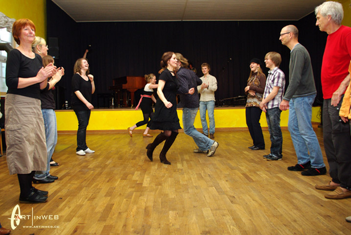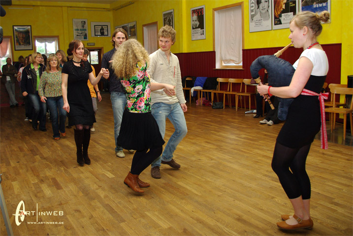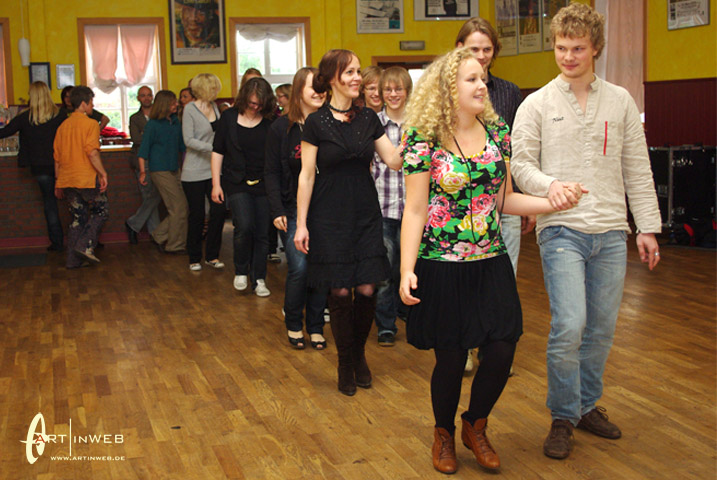 Villu, Eeva und Merike freuen sich sehr darüber, wenn zu ihren Konzerten nahezu alle Zuhörer auch zu tanzen beginnen. Und das gelingt Ihnen eigentlich immer. Wir, also Kaja und Martin aus der TangoBrücke, haben im Sommer 2009 das internationale Folkmusic-Festival in Viljandi besucht. Es war so etwas wie ein kleines Woodstock. 1000de von jungen Leuten, die Barfuß vor den Folkmusic-Bühnen im Regen und Matsch zusammen tanzten.