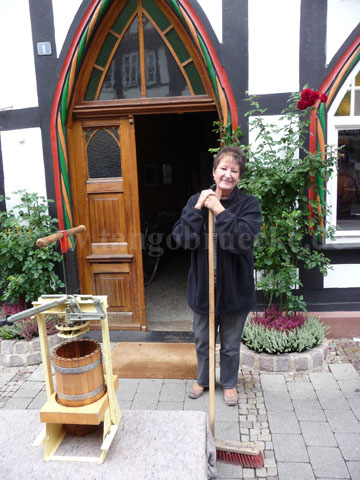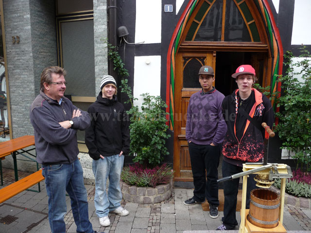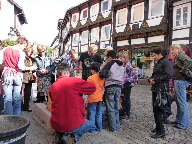 „Richtig viel Spaß hat mir das Herstellen unsere eigenen Apfelsaftes mit der Apfelsaftpresse gemacht“, verriet die 12-jährige Michelle Görte, Schülerin der Geschwister-Scholl-Schule Einbeck. Unter Einsatz gehöriger Muskelkraft wurden die Äpfel zunächst geraspelt bevor dann mit Hilfe der Handpresse den kleinen Apfelstückchen ein sehr leckerer naturtrüber Apfelsaft entzogen wurde.