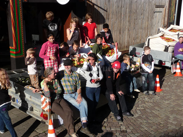 Im Anschluss drehte sich in den Nachmittagsstunden weiter alles um den Apfel. Es wurden verschiedene Spiele rund um den Apfel gespielt. Ganz geschickte Kinder stellten hübsche Ketten aus aufgefädelten Apfelkernen her, es wurden die längsten am Stück geschälten Apfelschalen gemessen, Kinder malten dutzende von Apfelkernbilder und es gab natürlich auf ein Apfelquiz mit 10 Fragen zum Thema Apfel. Drei Apfelkenner gewannen hierbei einschlägige Fachliteratur über Äpfel.