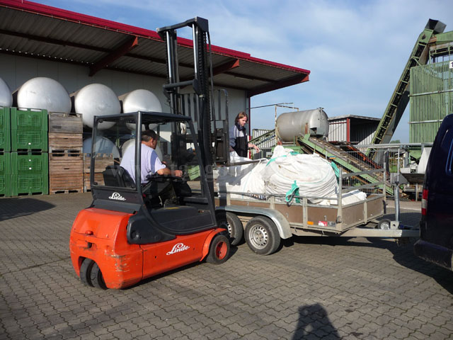 Aus den gut 3 Tonnen Äpfeln wird in der Mosterei Creydt in Dassel nun Apfelsaft hergestellt. Die Flaschen sollen mit Sonderetiketten des Apfelfestes versehen werden, die von den Kinder des Kinder-Cafes selbst gestaltet werden.