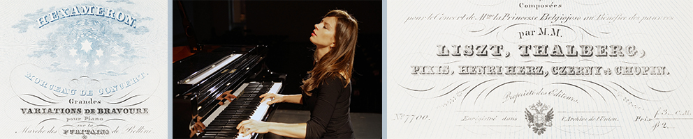 HEMERA heißt auf Griechisch der Tag und HEX steht für die Zahl Sechs. Ein „Hexameron“ ist also eine Geschichte die an sechs Tagen erzählt wird. Das vorliegende „Hexaméron“ benötigt nur einen Abend – aber das Besondere daran sind die sechs großen romantischen Komponisten, die es erdacht haben: Franz Liszt, Sigismund Thalberg, Frédéric Chopin, Carl Czerny, Johann Pixis und Henri Herz. Sie schrieben alle im Auftrag von Franz Liszt jeweils eine Variation über den Marsch aus der Oper „Die Puritaner“ von Vencenzo Bellini.