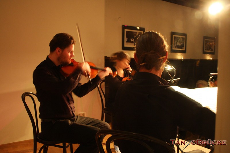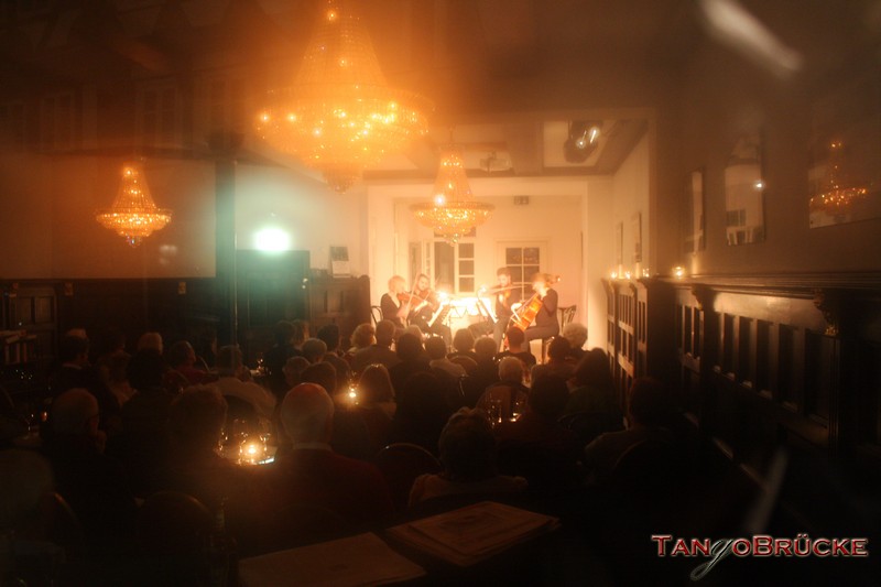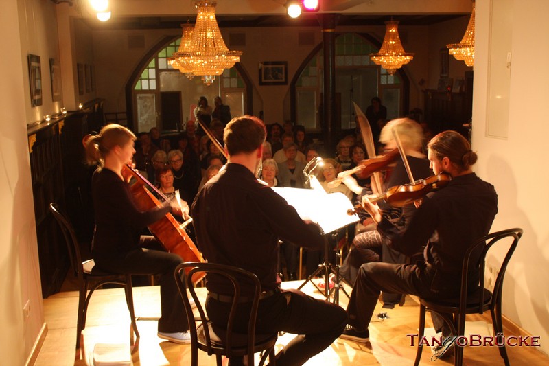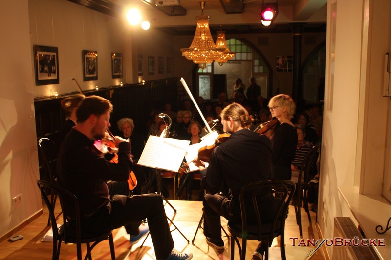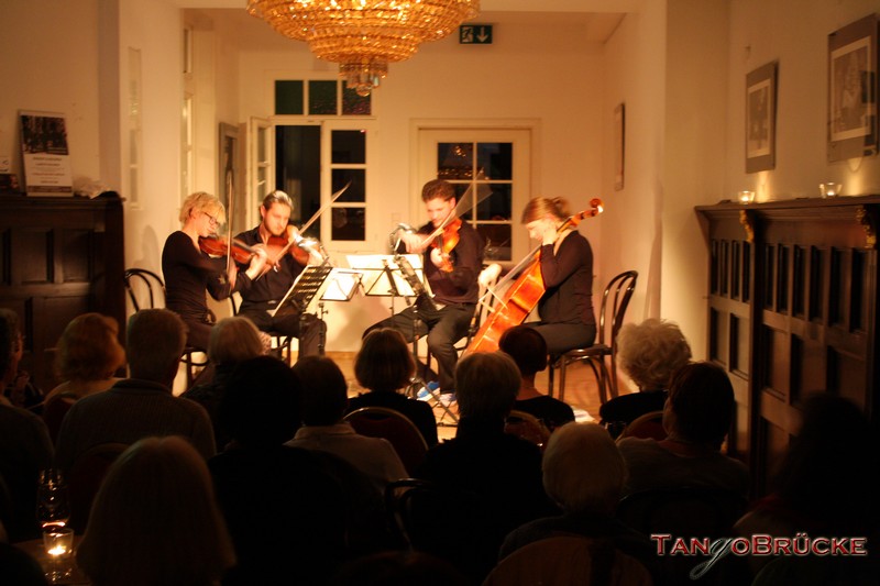 In der TangoBrücke präsentieren die vier jungen Musiker Beethovens Streichquartett Nr. 1 und das Streichquartett a-moll von Mendelssohn-Bartholdy. Mit diesem Streichquartett hat sich der erst 18jährige Felix Mendelssohn an den späten Quartetten Beethovens orientiert; er schrieb es 1827, kurz nachdem ihn die Nachricht vom Tod des von ihm verehrten Komponisten erreicht hatte.