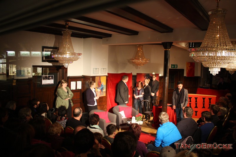 Die britischen Autoren und Schauspieler John Chapman und Anthony Marriott haben eine spritzig-leichte Komödie geschrieben, welche die Mitwirkenden von Crème frech schon bei der Probenarbeit immer wieder zu Lachen gebracht hat. Crème frech – das ist die Gruppe junger Amateure um Regisseur und Autor Rolf-D. Bartels, die in diesem Jahr ein doppeltes Jubiläum feiert: Sie spielt seit 10 Jahren Theater, zu Beginn in den Räumlichkeiten der Löns-Realschule, und sie tritt in der TangoBrücke seit nunmehr 5 Jahren auf. Die MitspielerInnen tun genau das gern und freuen sich wieder auf ein volles Haus mit einem interessierten und humorvollen Publikum.