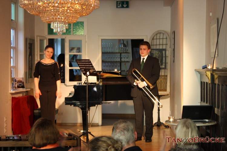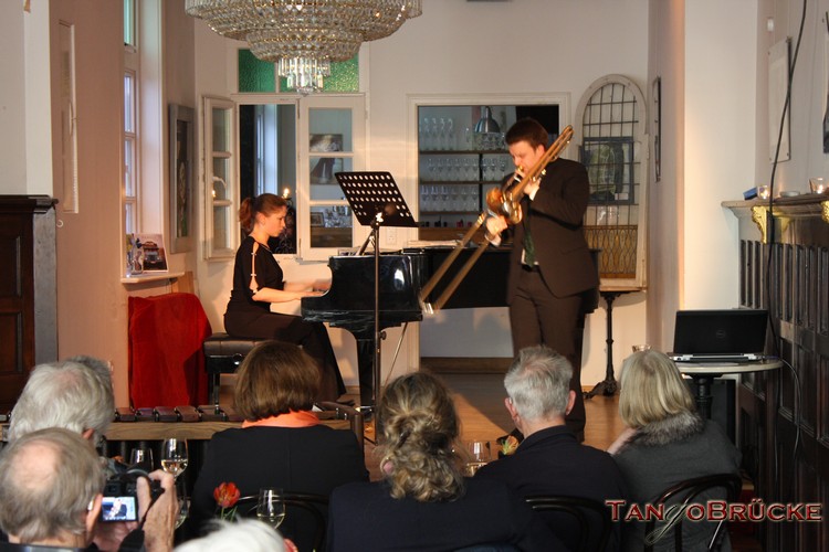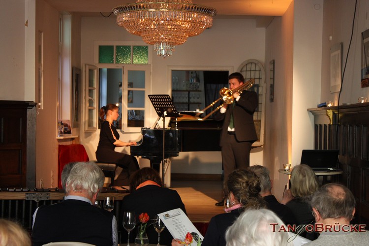 Auf dem Programm des Konzertes, das um 18:00 Uhr beginnen wird, stehen Vorträge des jungen Posaunisten Marten Bötjer, der gemeinsam mit seiner ukrainischen Duopartnerin Mariya Kim am Klavier eine Ballade von Frank Martin und das "Concert pour trombone et Piano/Orchester" von Launy Gröndahl vortragen wird. Neben dem Duo Bötjer/Kim, wird aus Lohe-Lippstadt die siebzehnjährige Alexandra Strigin mit ihrem Marimbaphone anreisen und eine Auswahl anspruchsvoller Stücke auf ihrem Instrument zum Besten geben.