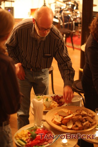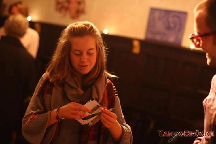 Eine kurze Begrüßungsansprache zur Vernissage durch den Künstler sowie die Möglichkeit, sich an kleinen Gaumenfreuden zu erfreuen sollen dazu einstimmen, die Werke der Ausstellung zunächst im Stillen auf sich wirken zu lassen. Vielleicht vermitteln die Bilder auch schon beim ersten Betrachten eine Ahnung auf das, was ab 20:00 Uhr auf die Besucher der TangoBrücke wartet....