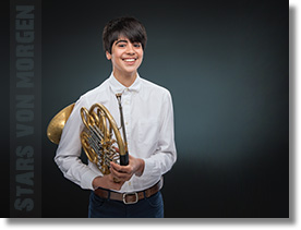 Der gerade siebzehnjährige Hornist Raul Maria Dignola ist im europäischen Wettbewerb „European Young Musicians“ von einer renommierten Jury als ein solches Ausnahmetalent wahrgenommen und unter zahlreichen Bewerbern als Finalist 2016 ausgewählt worden. Am 3. September hat er in Köln Deutschland gegen 10 weitere Teilnehmer aus den Europäischen Partnerländern vertreten und mit dem WDR- Sinfonieorchester das Hornkonzert Nr. 2 von W. A. Mozart aufgeführt.